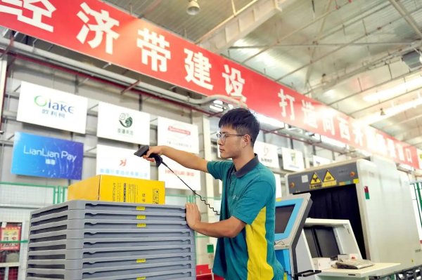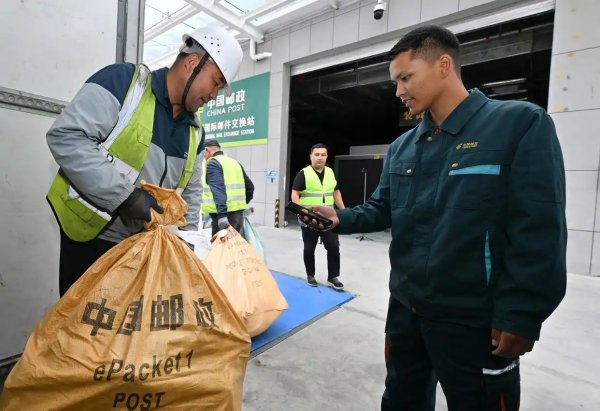在新疆霍尔果斯国际邮件交换站,中国邮政工作人员(右一)在为即将交换到哈萨克斯坦邮政的邮包扫码转运。据了解,霍尔果斯国际邮件交换站于2022年7月正式运营,以进出口物流渠道为支持,为跨境电商产业链上下游提供仓储和快递物流综合九游会网页版的解决方案。承运中国至中亚多国、俄罗斯以及欧洲国家的出口国际邮件。3年来,累计国际邮件交换量2026吨(9月11日摄)。新华社记者 李贺 摄